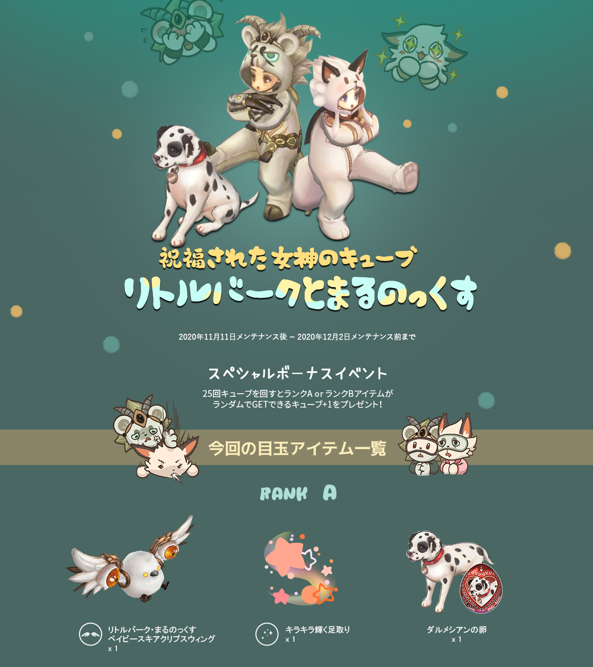 2020年11月11日(水)メンテナンス後~2020年12月2日(水)メンテナンス前までの間、『祝福された女神のキューブ:リトルバークとまるのっくす』を販売いたします!